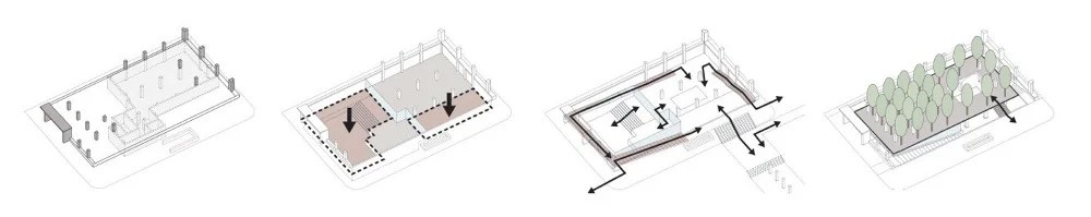 3. Interconnecting context with proposed space by creating a pedestrian znetwork that links Jeongdong, Deoksugung palace, existing underpath and the City hall across the street.