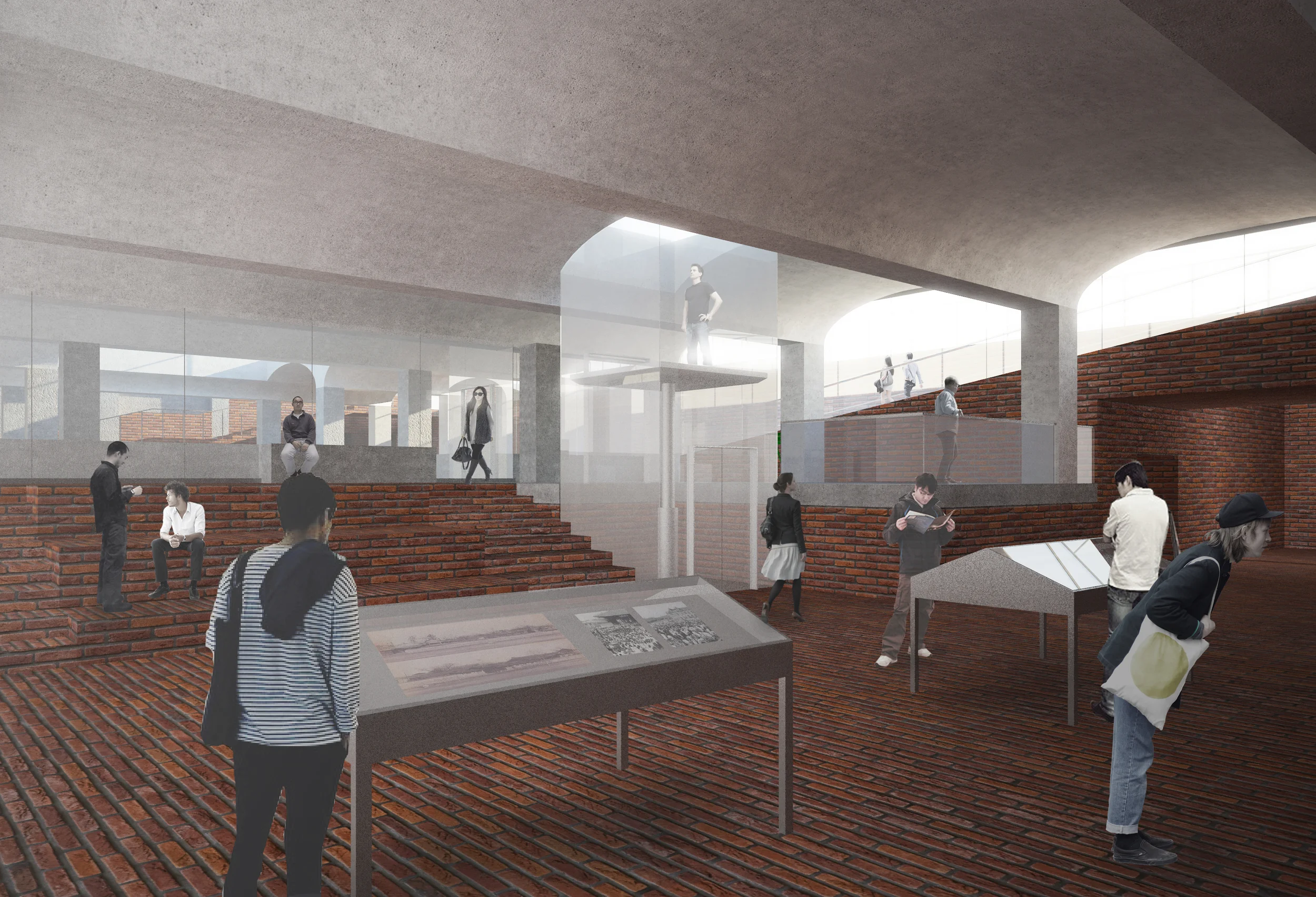 2. Inside-out: transforming existing underground space into open space, exposing old structures overlaid by new brick surface.